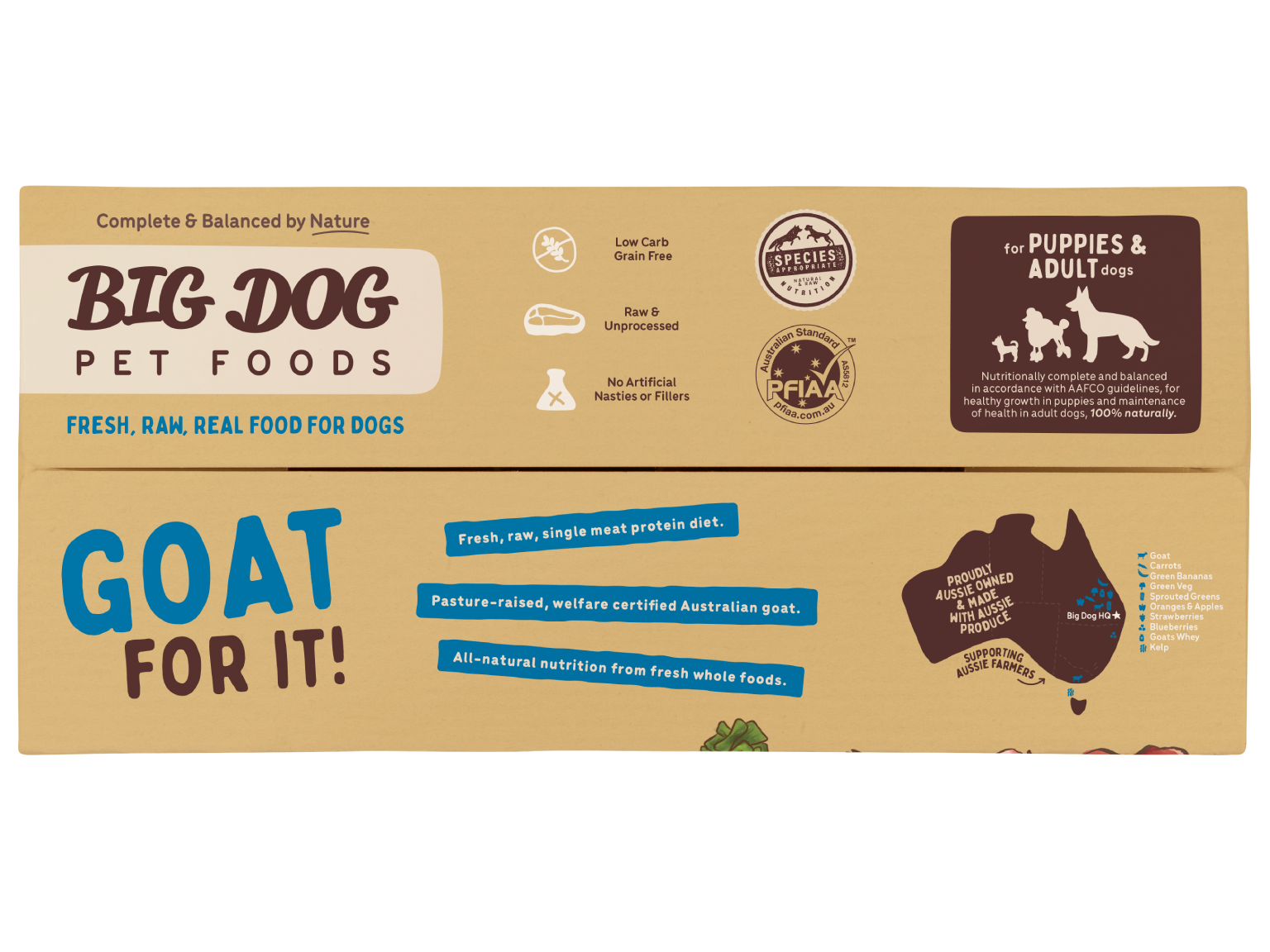 Perfect for dogs needing a novel protein or a sensitive stomach-friendly diet, Big Dog BARF Goat Raw helps keep your pup thriving with every bite.