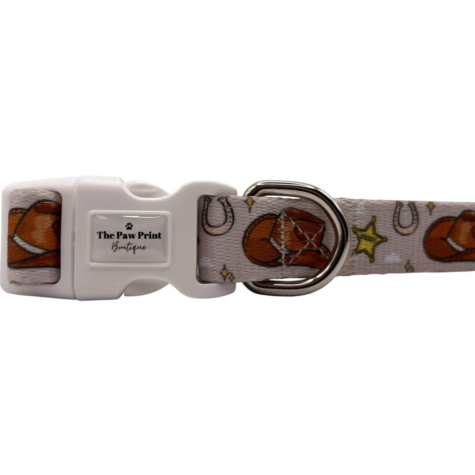 The Howdy Pawtner Collar from The Paw Print Boutique combines durability with style, crafted for comfort and secure fit. Perfect for active pets, it ensures safety while showcasing a charming western flair.